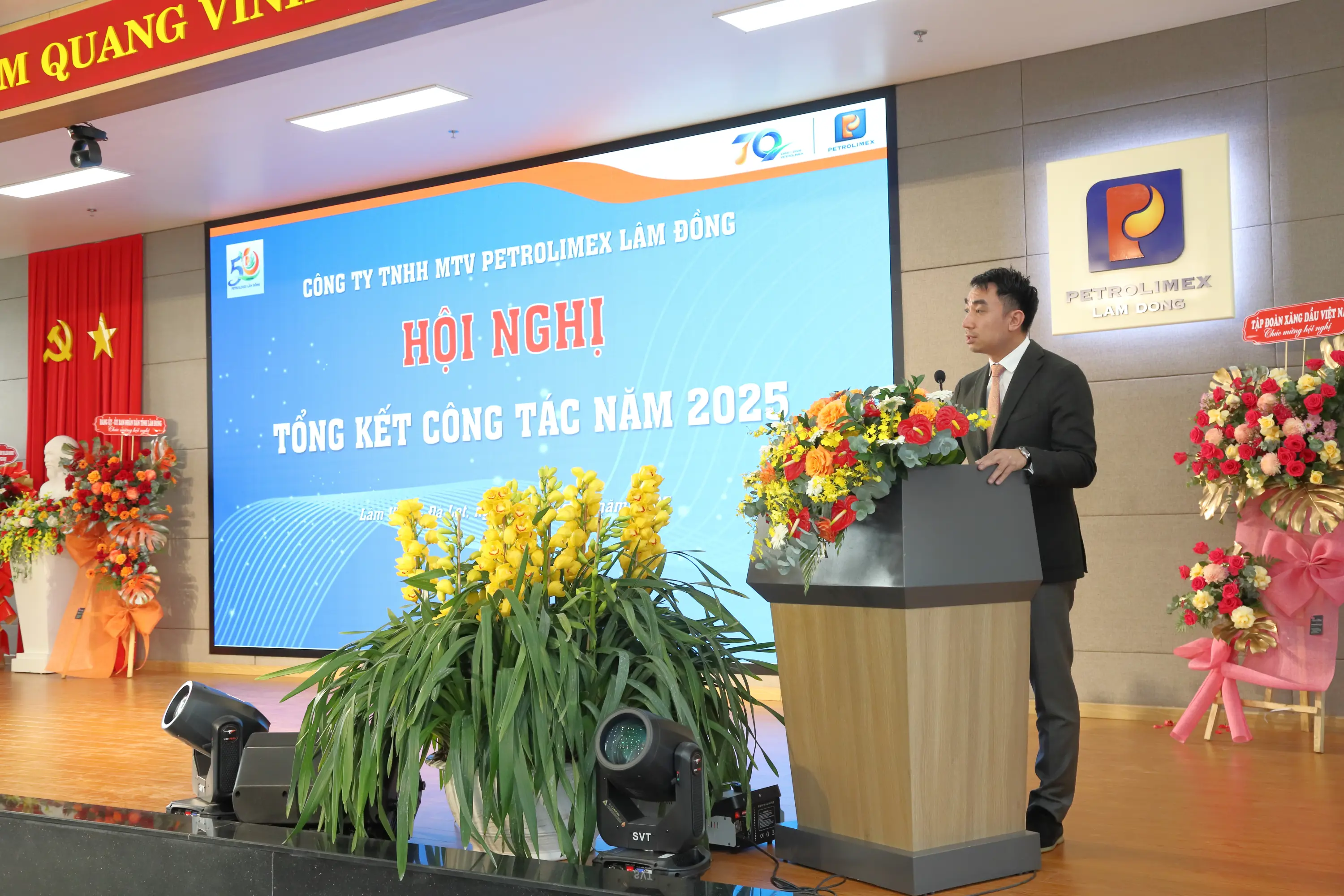 Phát biểu tại Hội nghị, ông Trần Tuấn Linh - Thành viên HĐQT Tập đoàn Xăng dầu Việt Nam ghi nhận và đánh giá cao vai trò nòng cốt của Petrolimex Lâm Đồng trong việc bảo đảm nguồn cung xăng dầu ổn định, giữ vững thị phần và uy tín thương hiệu tại khu vực Tây Nguyên - Nam Trung Bộ, đồng thời biểu dương những kết quả tích cực Công ty đạt được trong năm 2025 khi hoàn thành vượt mức các chỉ tiêu Tập đoàn giao, triển khai hiệu quả công tác sáp nhập, bảo đảm an toàn, quản trị và chăm lo tốt đời sống người lao động. Ông đề nghị Petrolimex Lâm Đồng tiếp tục phát huy lợi thế mạng lưới, đẩy mạnh đầu tư hạ tầng, chuyển đổi số, nâng cao chất lượng dịch vụ, mở rộng thị phần và đa dạng hóa nguồn thu, qua đó đóng góp ngày càng lớn cho thành tích chung của Tập đoàn trong thời gian tới, lập thành tích chào mừng 50 năm thành lập Công ty và 70 năm thành lập Tập đoàn Xăng dầu Việt Nam.